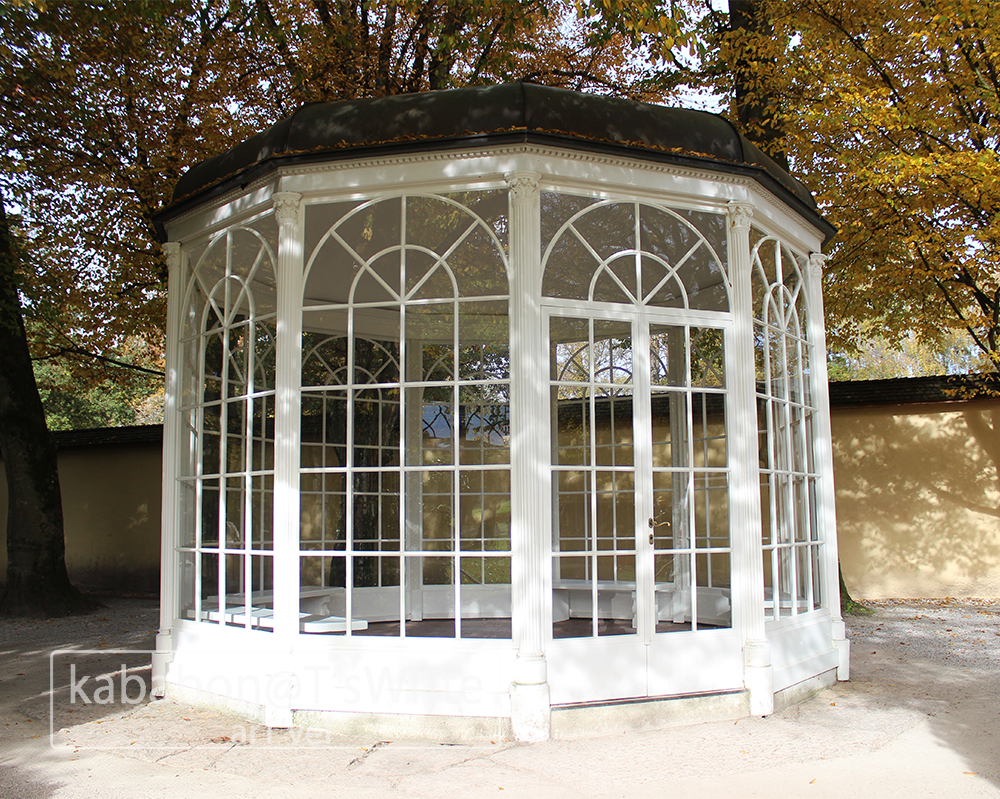 このほか今は市役所になっているミラベル宮殿や宮殿内庭園の階段やバラのアーチ、祝祭劇場に通じる手前の「馬洗場」などは映画「ドレミの歌」の場面でロケが行われた名所。ノンベルク修道院もいまだ健在。クライマックスのスリリングなシーン、ザンクトペーター墓地、トラップ邸として使われたレオポルツクローン城、「もうすぐ17歳」の名曲が歌われたガラスのガゼボが移築されているヘルブルン宮殿等々……。